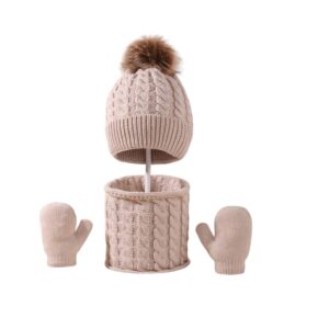 Σετ Πλεκτό μάλλινο σκουφάκι με φούντα + κασκόλ+γάντια για ηλικία 0-10 χρονών Beige
