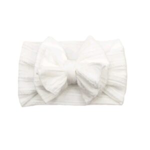 Παιδική- Βρεφική Μαλακή κορδέλα μαλλιών Rib με μεγάλο φιόγκο 0-6 χρονών White
