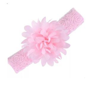 Παιδική- Βρεφική κορδέλα Λουλούδι με δαντέλα για βάφτιση και παρανυφάκια 0-3 χρονών- Pink