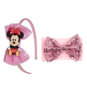 Σετ Παιδική Στέκα Μαλλιών Disney Minnie Mouse Strass Pink+ Κορδέλα