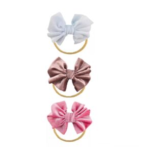 Σετ 3 βελούδινες κορδέλες με φιόγκο dirty pink-white-pink 0-8 χρονών