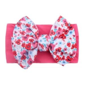 Παιδική- Βρεφική Μαλακή κορδέλα μαλλιών με μεγάλο φιόγκο Pink Flowers 0-7 χρονών