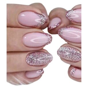 Press-on Nails Ψεύτικα νύχια σετ nail art 24 Τμχ + 1 κόλλα- Pink Strass