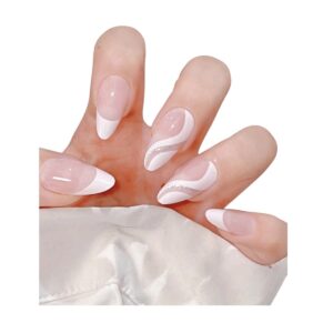 Press-on Nails Ψεύτικα νύχια σετ nail art 24 Τμχ + 1 κόλλα- White Design