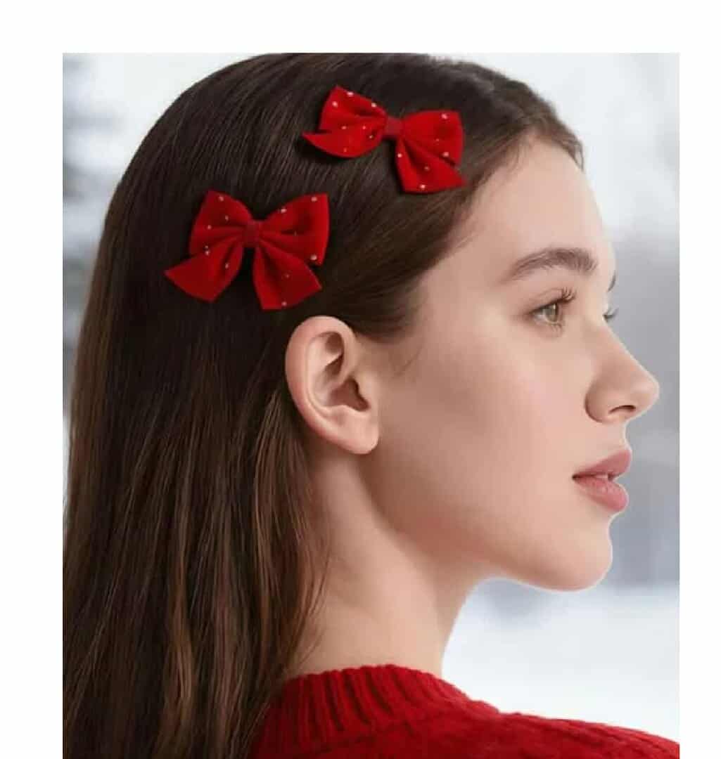 Clip -Κοκαλάκι μαλλιών βελούδινος κόκκινο φιόγκάκι με στρασάκια 6 cm