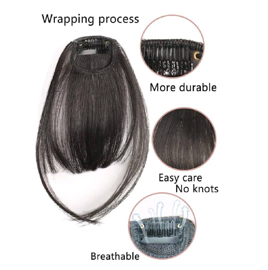 Φράντζα μαλλιών ραβώμενη και με κλιπ – Μαύρο χρώμα