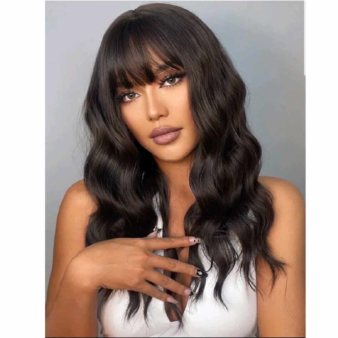 Γυναικεία περούκα curly σε καστανό σκούρο χρώμα συνθετική υψηλής ποιότητας 20 inches