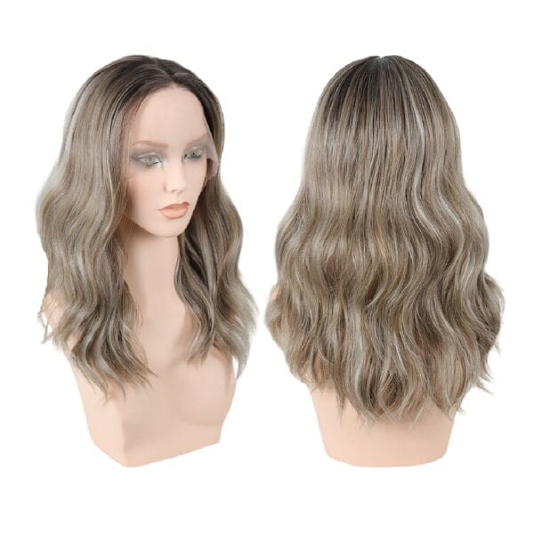 Γυναικεία περούκα Full lace 13×4 (αόρατη εφαρμογή) σε Καστανό ανοιχτό με ανταύγειες χρώμα συνθετική υψηλής ποιότητας Kanekalon τρίχα 20 inches