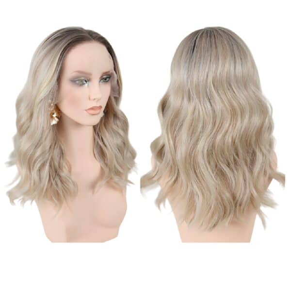 Γυναικεία περούκα Full lace 13×4 (αόρατη εφαρμογή) σε Ξανθό με καστανή ρίζα χρώμα συνθετική υψηλής ποιότητας Kanekalon τρίχα 20 inches
