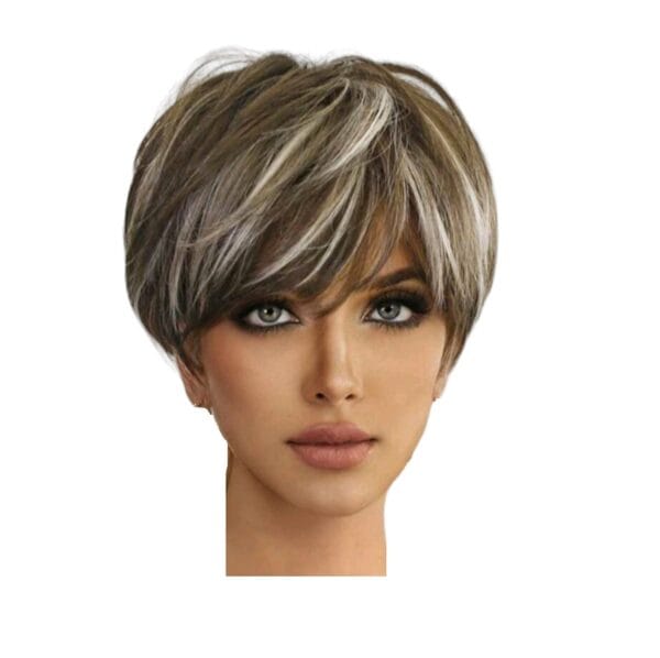 Γυναικεία περούκα καστανό χρώμα με ξανθιές ανταύγειες συνθετική υψηλής ποιότητας 10 inches