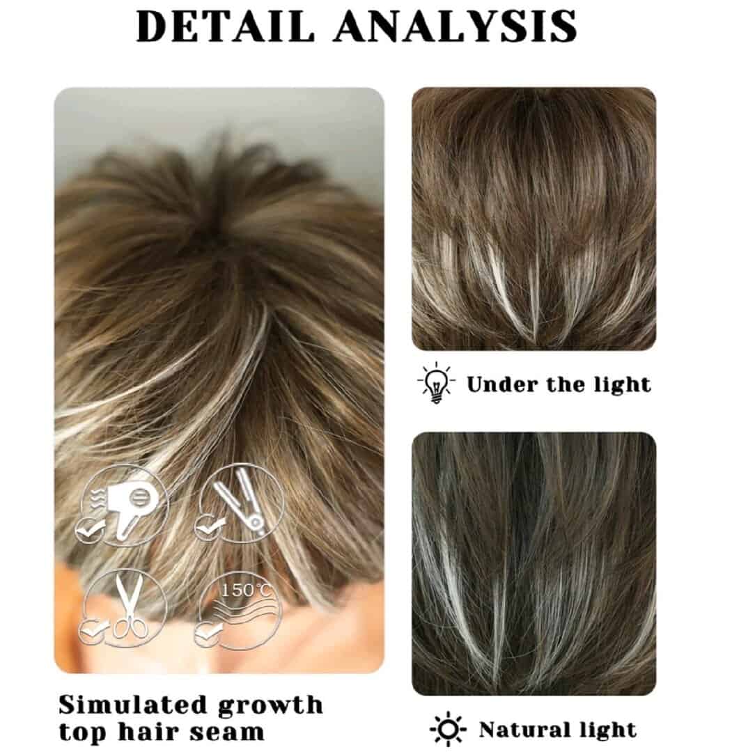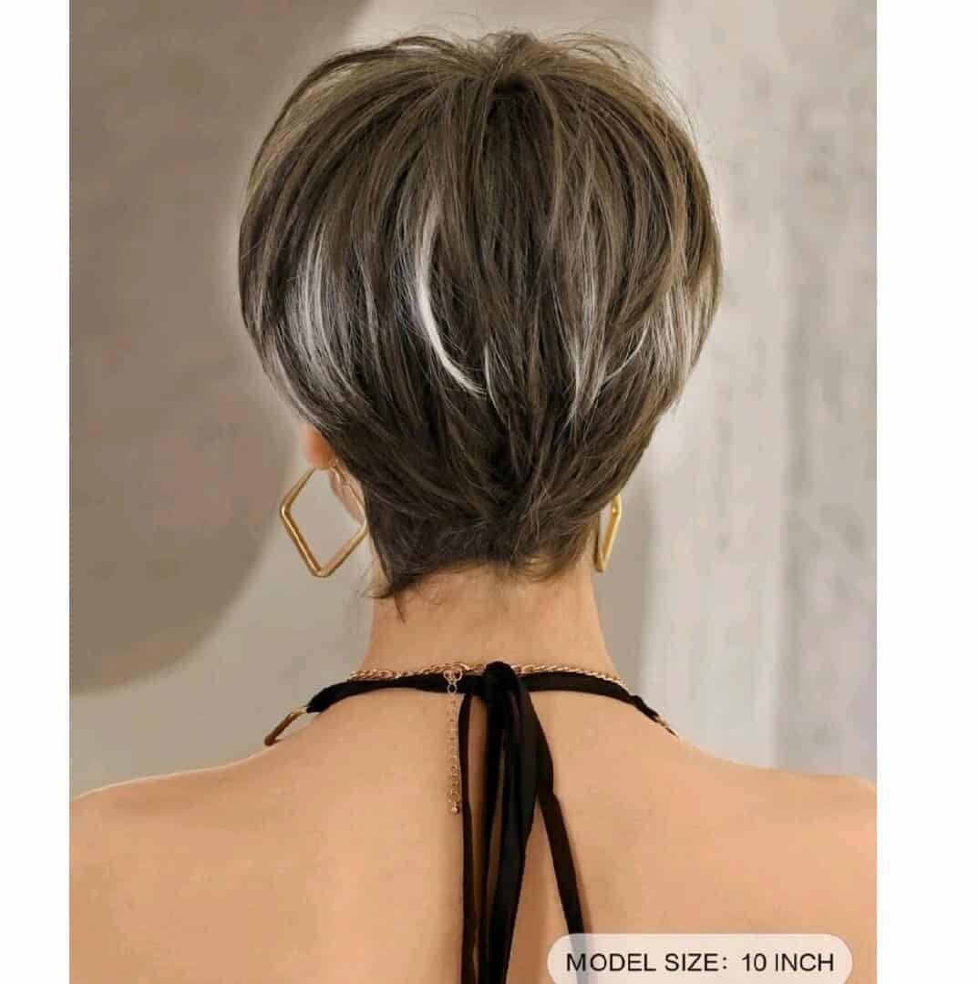 Γυναικεία περούκα καστανό χρώμα με ξανθιές ανταύγειες συνθετική υψηλής ποιότητας 10 inches