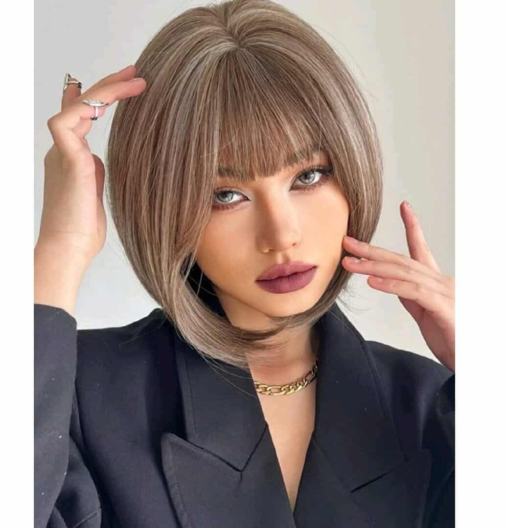 Γυναικεία περούκα καστανό με ανταύγειες χρώμα συνθετική υψηλής ποιότητας 12 inches