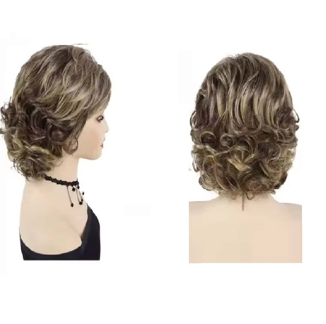 Γυναικεία περούκα σε καστανό χρώμα με ανταύγειες συνθετική υψηλής ποιότητας 12 inches