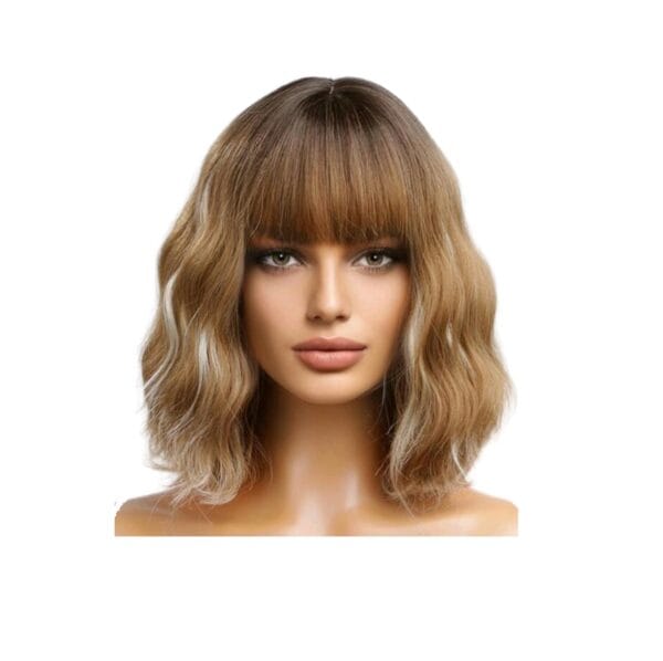 Γυναικεία περούκα σε καστανό χρώμα με ξανθές ανταύγειες συνθετική υψηλής ποιότητας 12 inches