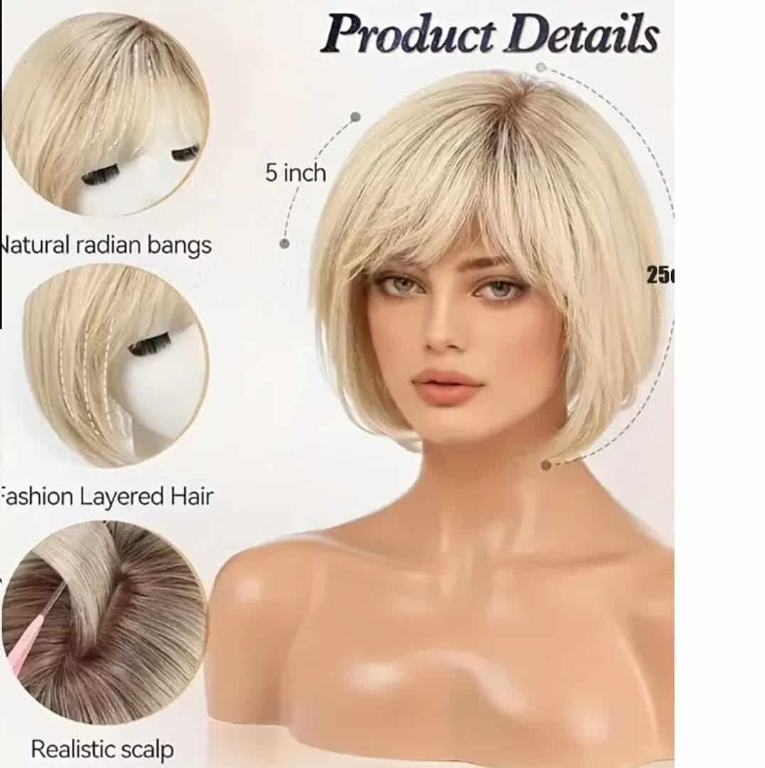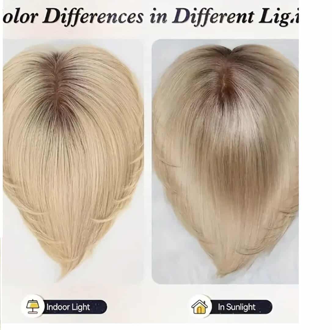 Γυναικεία περούκα σε ξανθό χρώμα με σκούρη ρίζα συνθετική υψηλής ποιότητας 10 inches