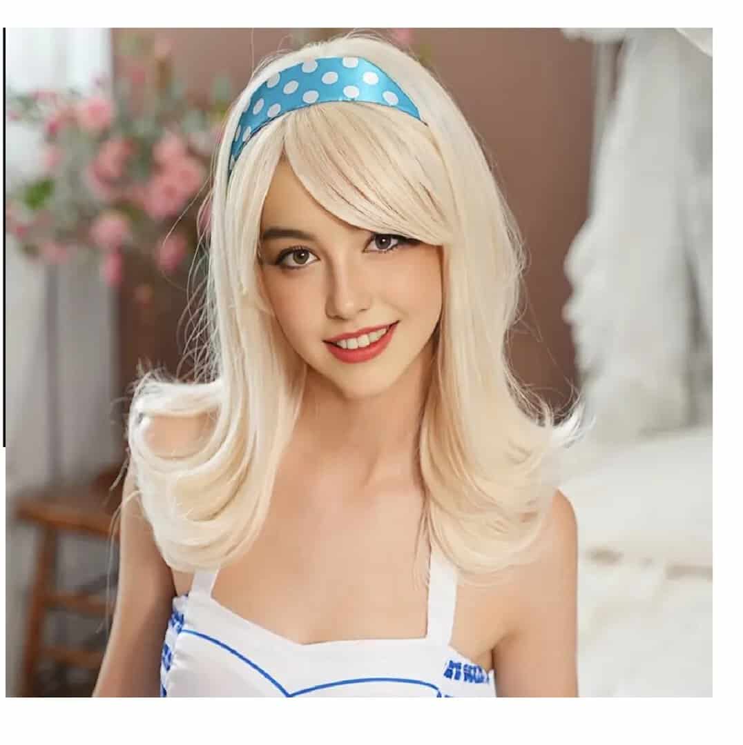 Γυναικεία περούκα σε ξανθό πλατινέ χρώμα συνθετική υψηλής ποιότητας με φιλαρισμα 18 inches