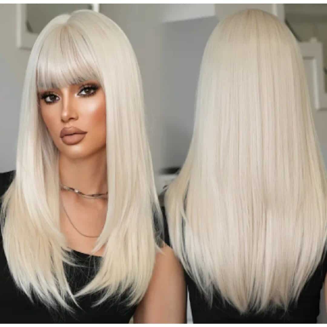 Γυναικεία περούκα σε ξανθό πλατινέ χρώμα συνθετική υψηλής ποιότητας με αφέλειες 24 inches
