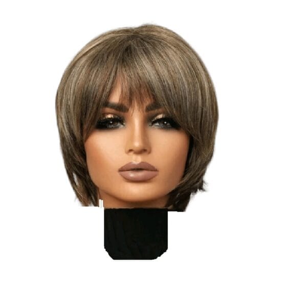 Γυναικεία Περούκα συνθετική υψηλής ποιότητας καστανό με ξανθές ανταύγιες 10 inches
