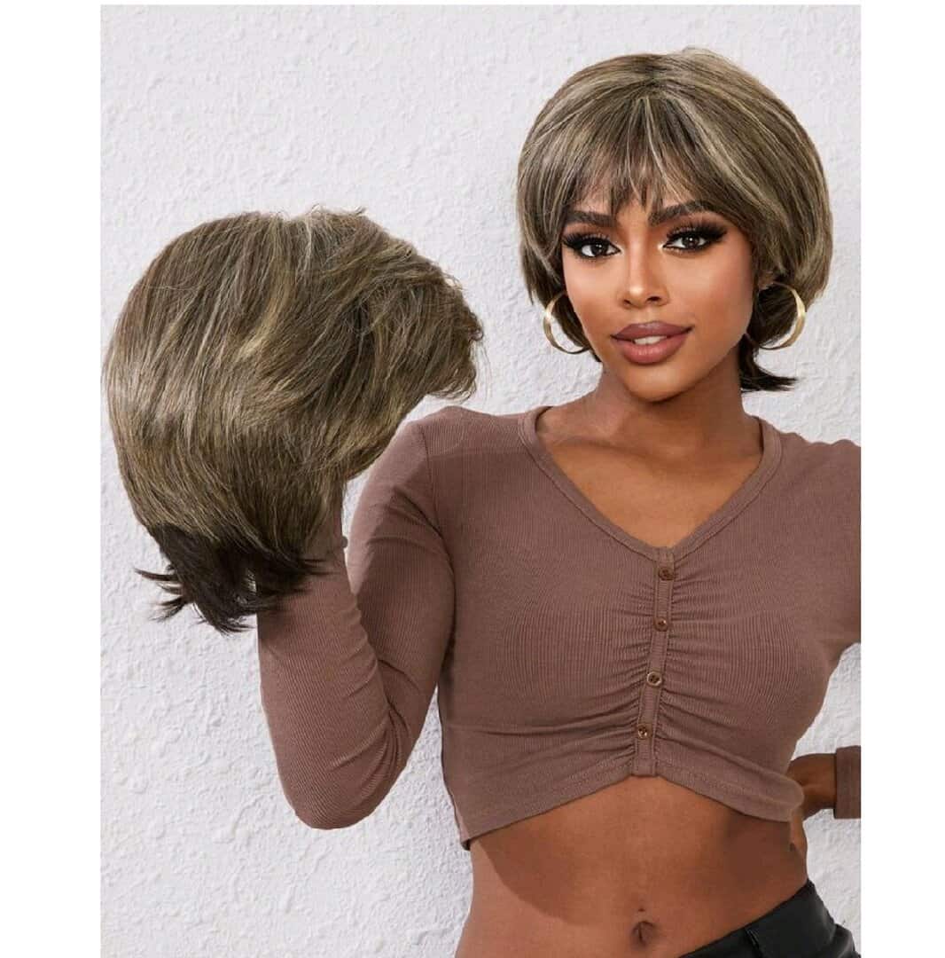 Γυναικεία Περούκα συνθετική υψηλής ποιότητας καστανό με ξανθές ανταύγιες 10 inches