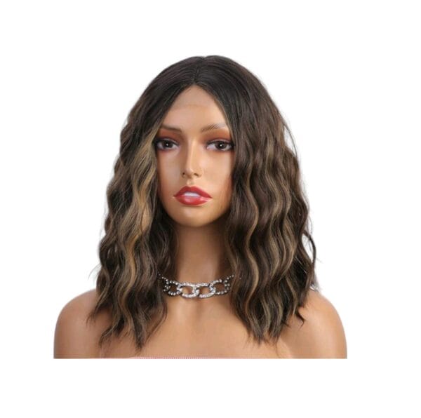Γυναικεία περούκα wavy σε καστανό χρώμα με ανταύγειες συνθετική υψηλής ποιότητας front lace (διαφάνεια) 14 inches