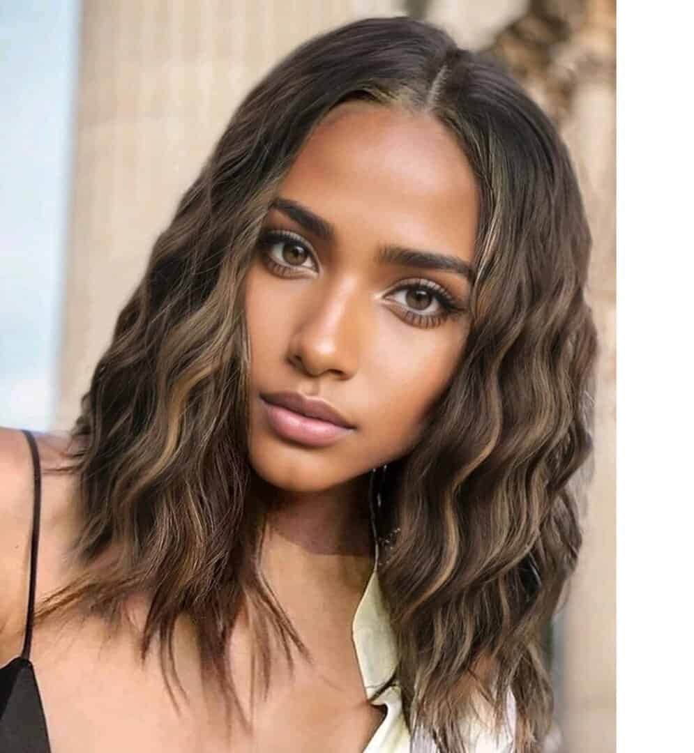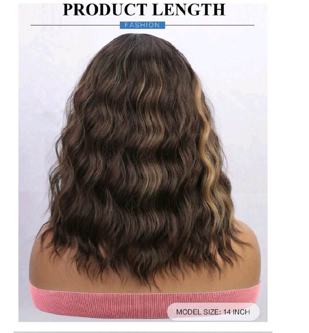 Γυναικεία περούκα wavy σε καστανό χρώμα με ανταύγειες συνθετική υψηλής ποιότητας front lace (διαφάνεια) 14 inches