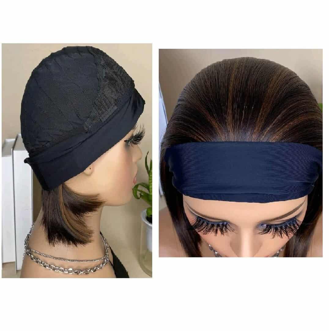 Γυναικεία περούκα με κορδέλα συνθετική υψηλής ποιότητας Καστανό με ανταύγειες χρώμα 12 inches