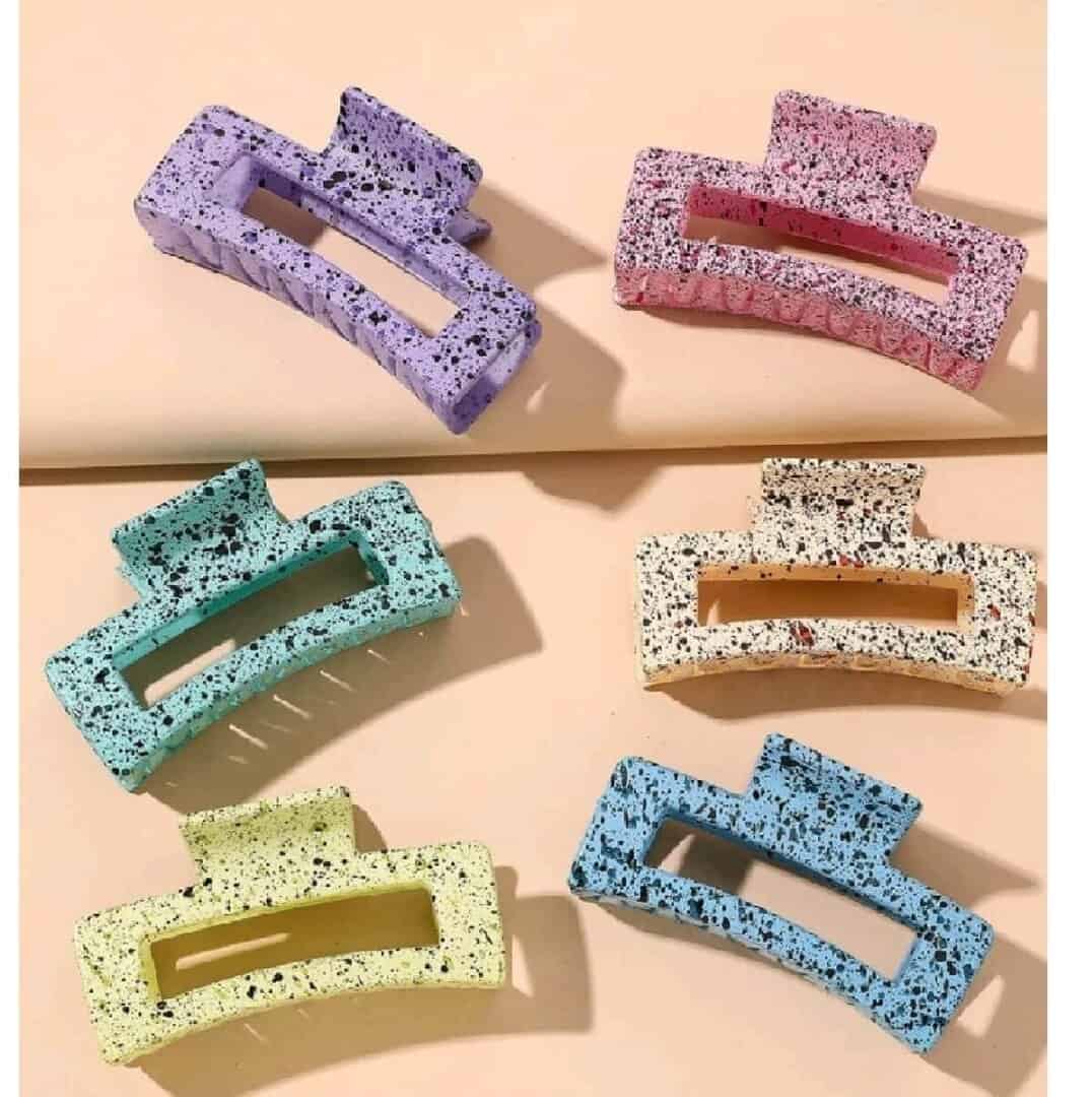 Γυναικείο fashion clip- Κλάμερ κοκάλινο Purple Dots 8 cm