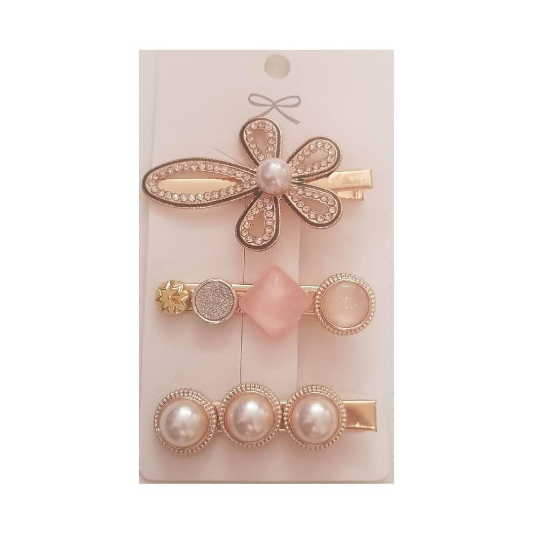 Γυναικείο fashion Σετ 3 τμχ clip flower pearl Pink