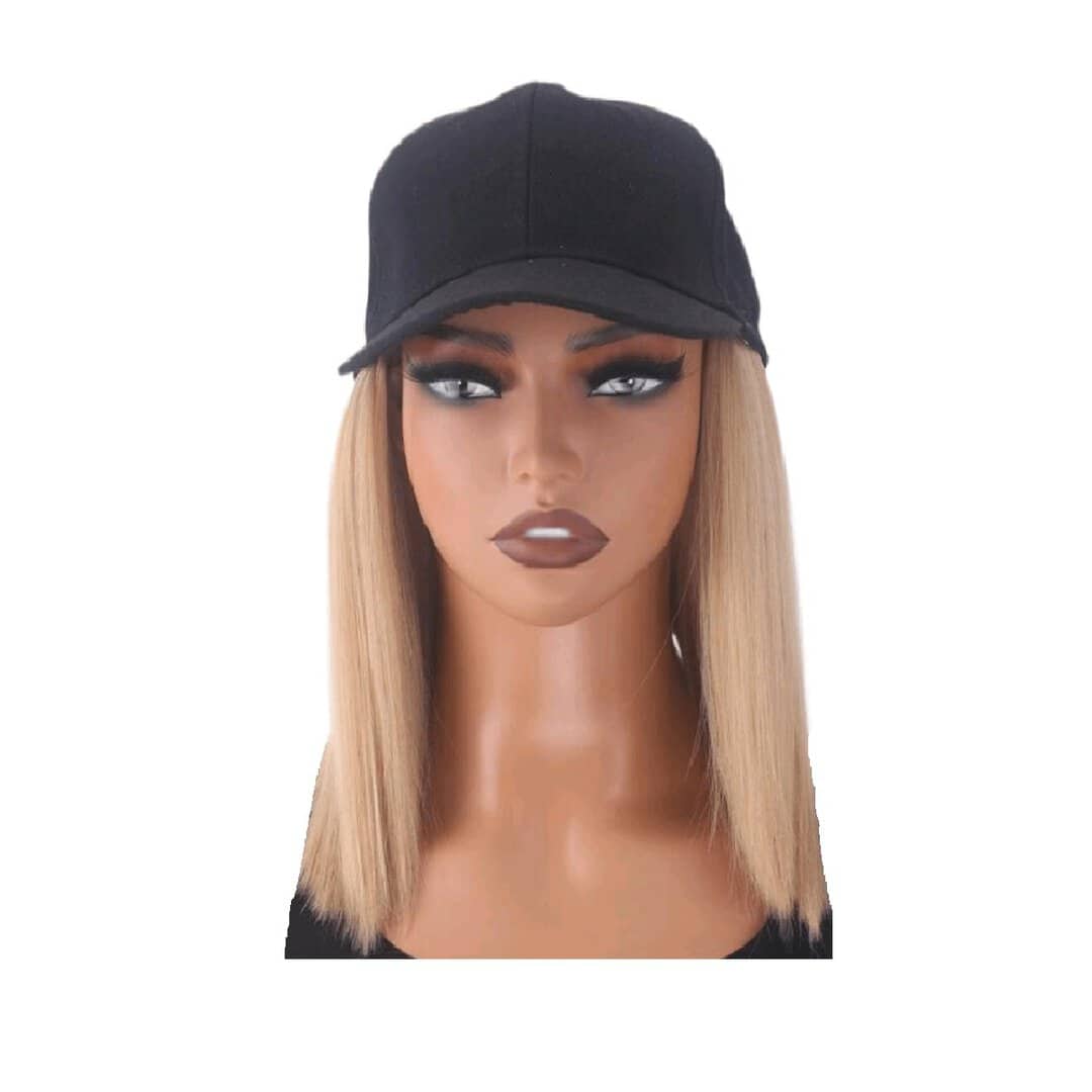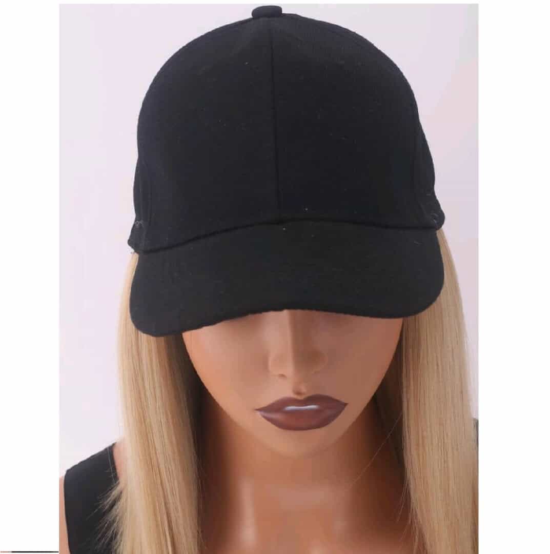 Γυναικείο μαύρο καπέλο με ραμμένα μαλλιά στο κάτω μέρος- Ξανθό χρώμα