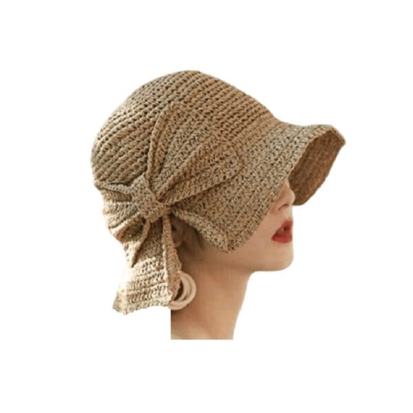 Γυναικείο ψάθινο μαλακό Καπέλο με μάκρος και φιόγκο- Beige