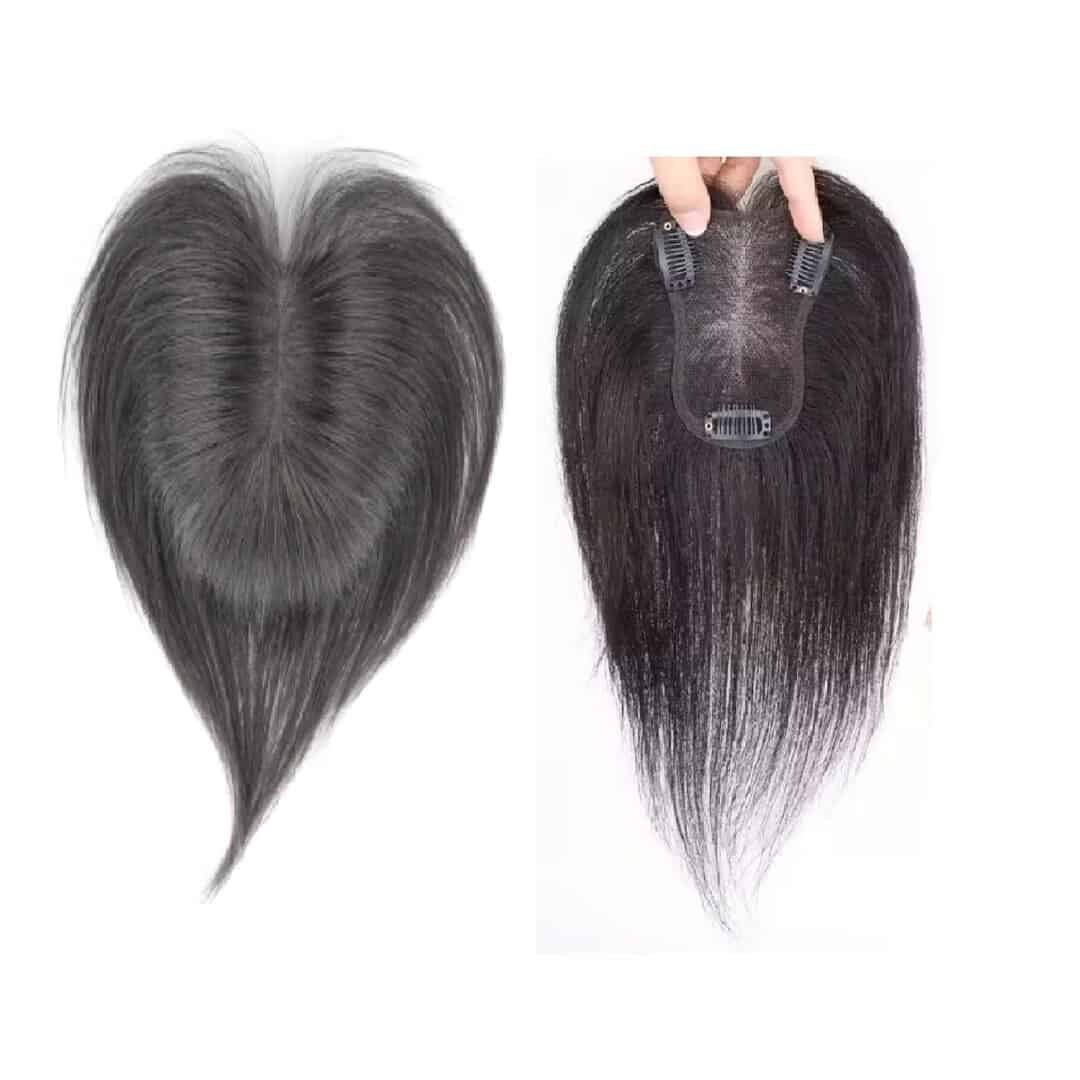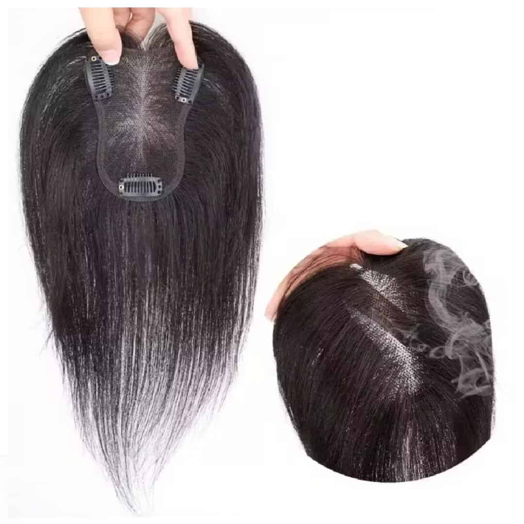 Γυναικείο Topper Τουπέ κορυφής μαλλιών από φυσική τρίχα Full lace ( ραμμένο σε διαφάνεια ) – Φυσικό μαύρο 12 inches