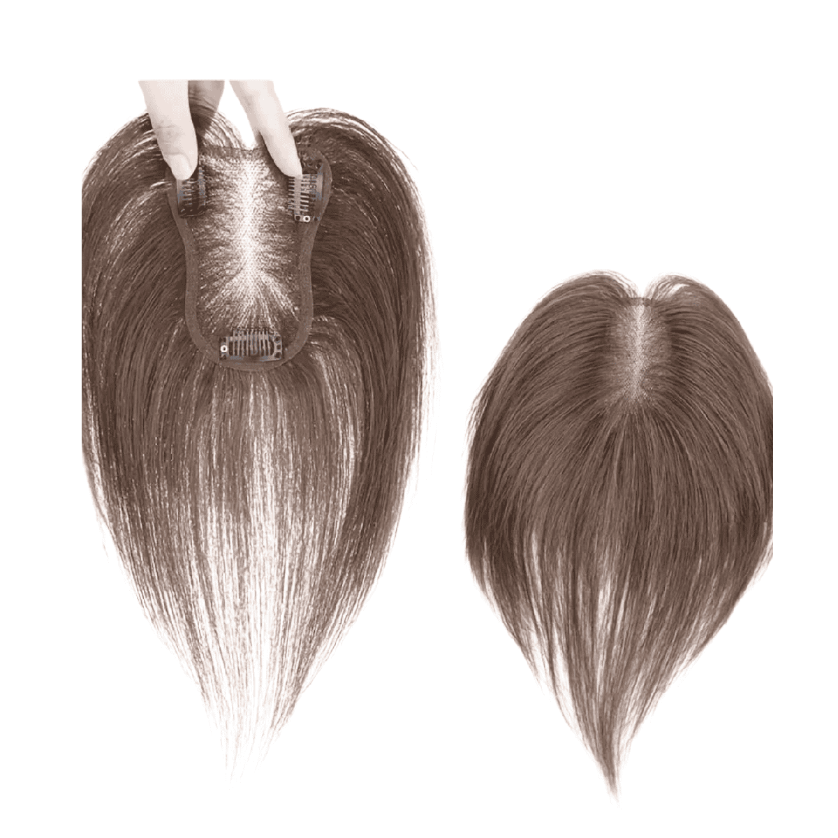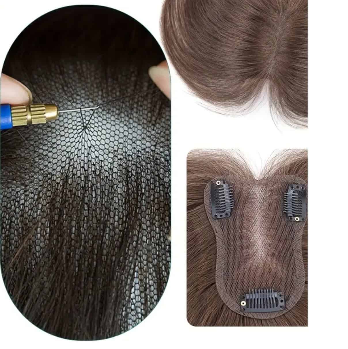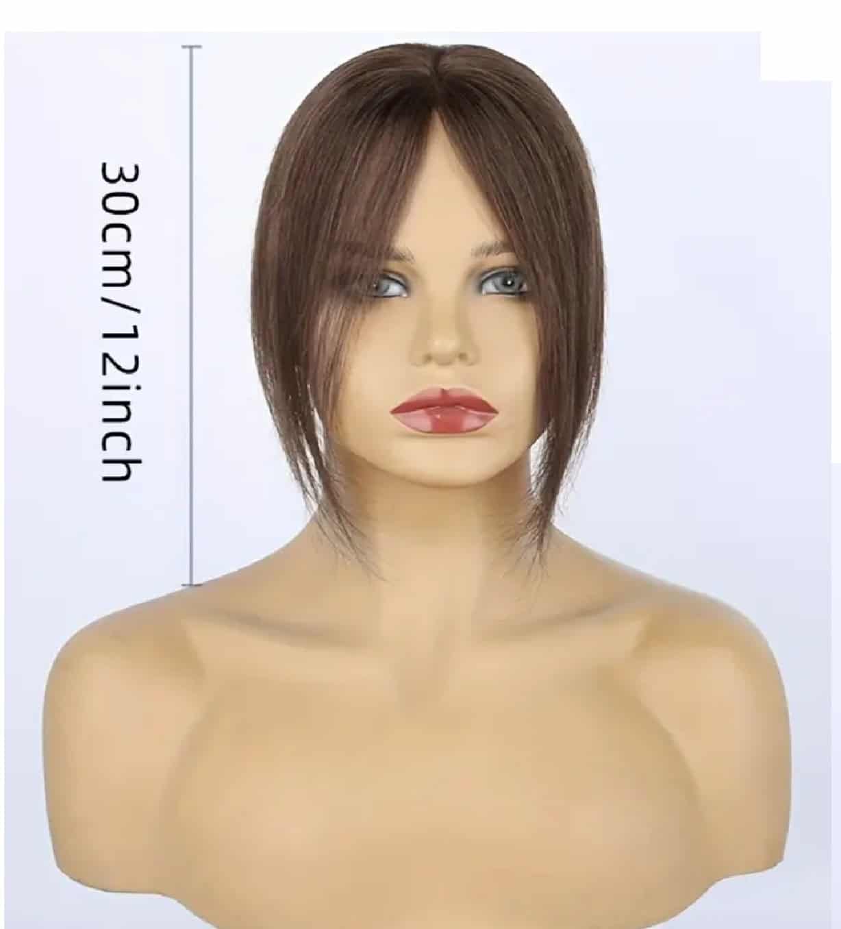 Γυναικείο Topper Τουπέ κορυφής μαλλιών από φυσική τρίχα Full lace ( ραμμένο σε διαφάνεια ) – Καστανό σκούρο Brown 12 inches