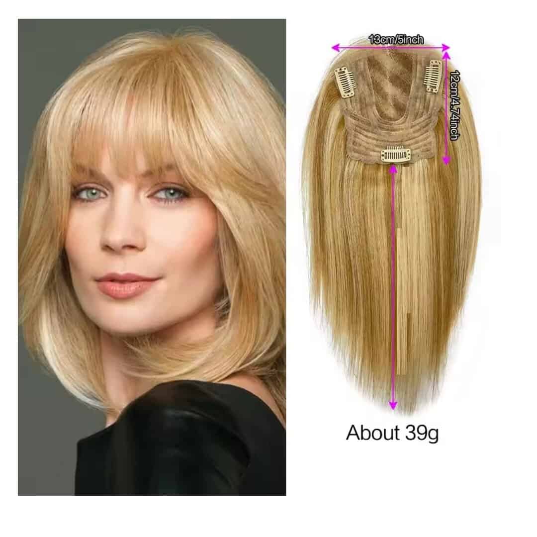 Γυναικείο Topper Τουπέ κορυφής μαλλιών από φυσική τρίχα Full lace ( ραμμένο σε διαφάνεια ) – Ξανθό με ανταύγειες 12 inches