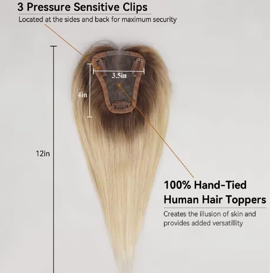 Γυναικείο Topper Τουπέ κορυφής μαλλιών από φυσική τρίχα Full lace ( ραμμένο σε διαφάνεια ) – Ξανθό ombre σκούρη ρίζα 12 inches