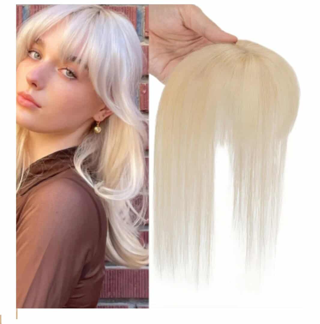 Γυναικείο Topper Τουπέ κορυφής μαλλιών από φυσική τρίχα Full lace ( ραμμένο σε διαφάνεια ) – Ξανθό πλατινέ 10 inches