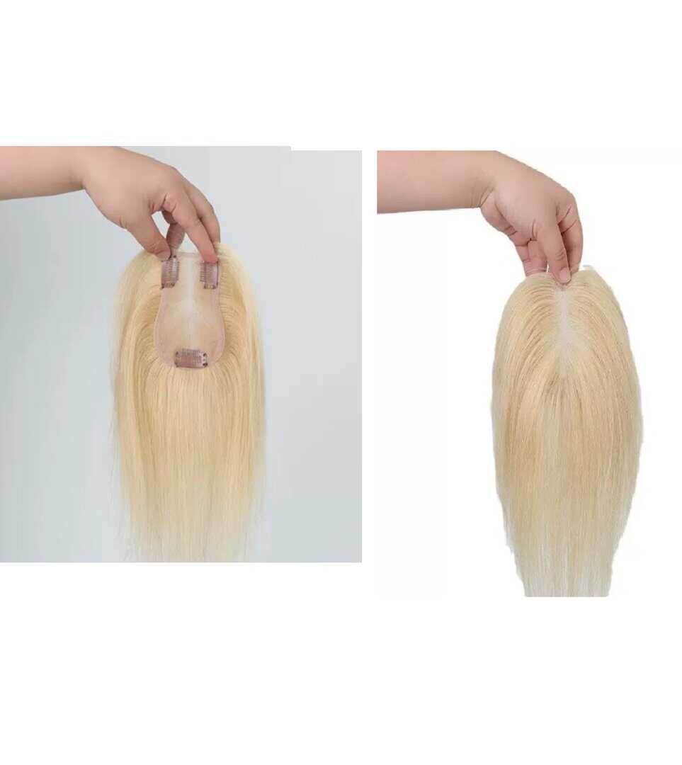 Γυναικείο Topper Τουπέ κορυφής μαλλιών από φυσική τρίχα Full lace ( ραμμένο σε διαφάνεια ) – Ξανθό πλατινέ 12 inches