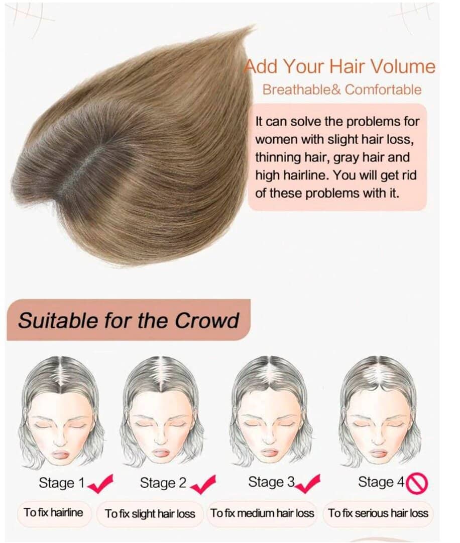 Γυναικείο Topper Τουπέ κορυφής μαλλιών από φυσική-ανθρώπινη τρίχα!