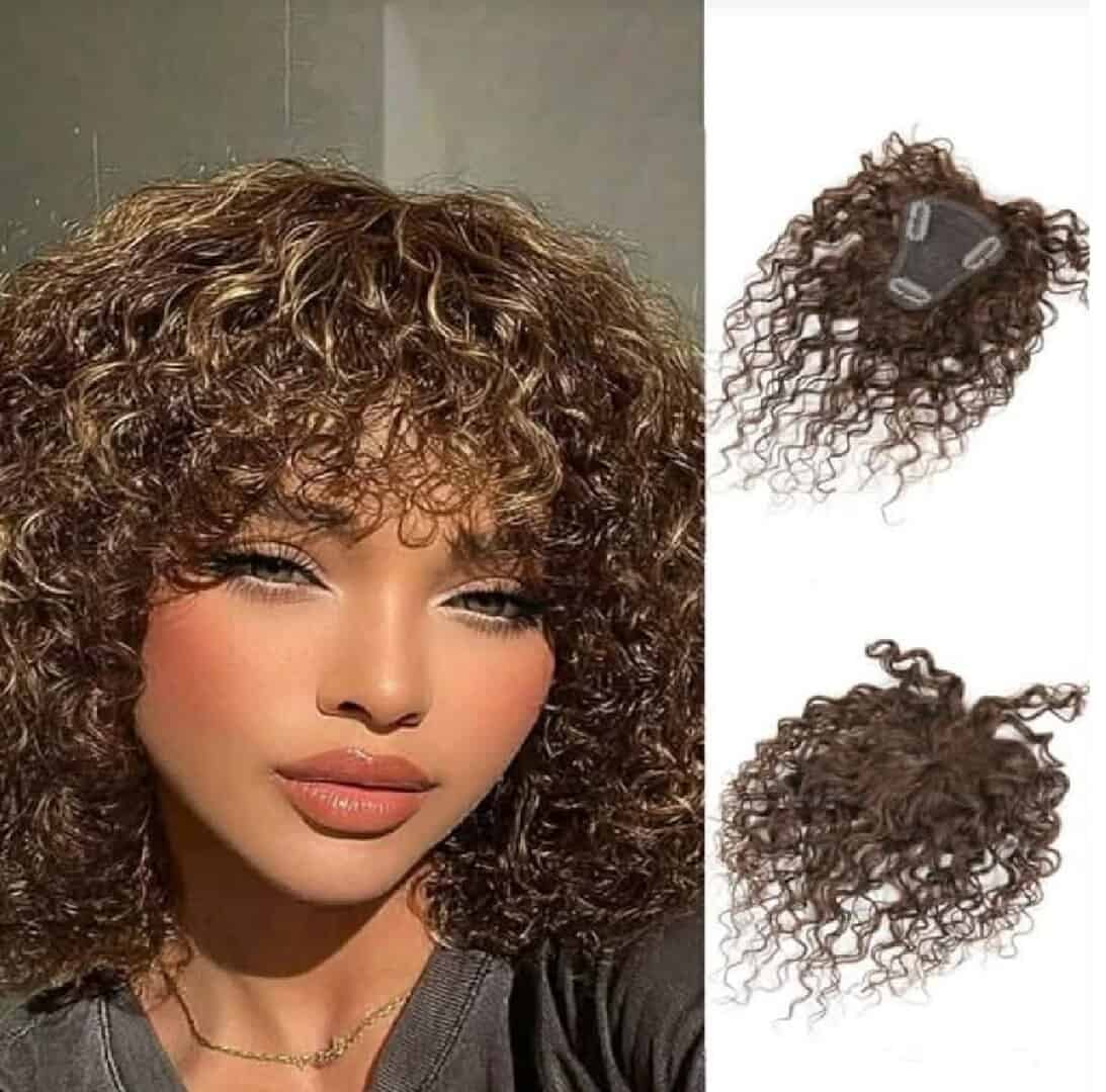 Γυναικείο Topper Τουπέ κορυφής μαλλιών από φυσική τρίχα – Καστανό άφρο μπούκλα 12 inches