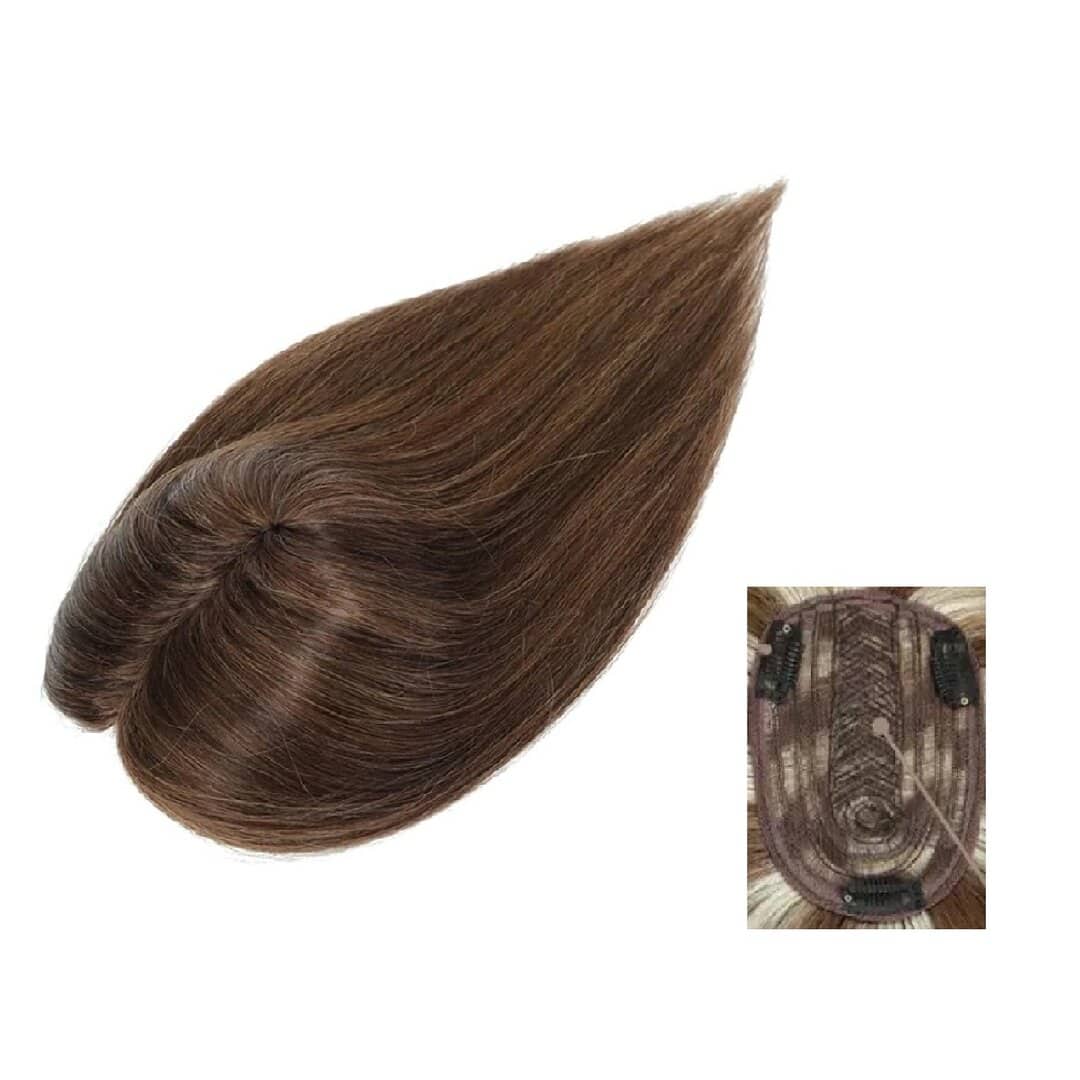 Γυναικείο Topper Τουπέ κορυφής μαλλιών από φυσική τρίχα – Καστανό σκούρο με ανταύγειες p2-6 16 inches