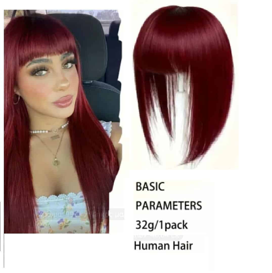 Γυναικείο Topper Τουπέ κορυφής μαλλιών από φυσική τρίχα με 3 κλιπ στήριξης -Κόκκινο Ρουμπινί χρώμα 16 inches
