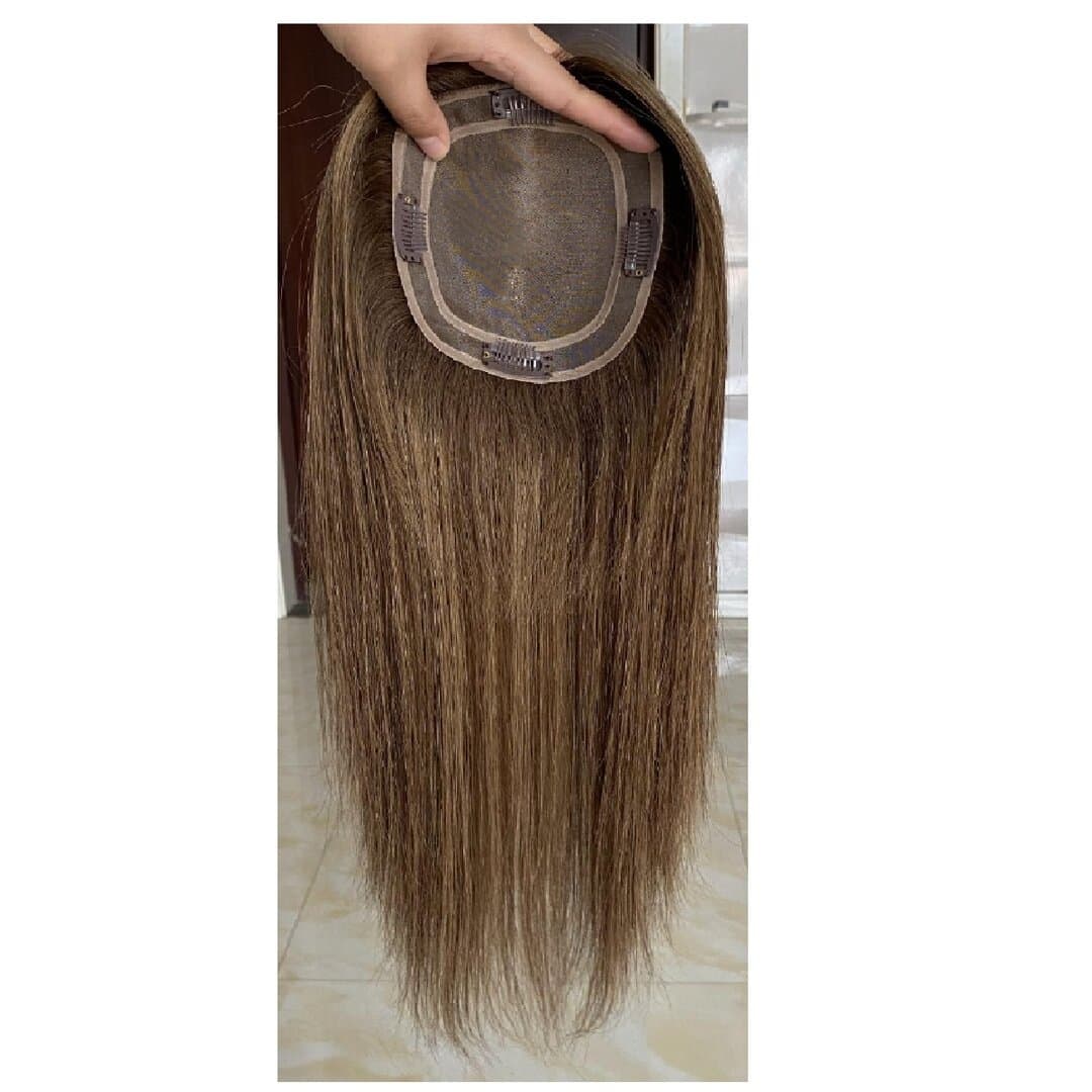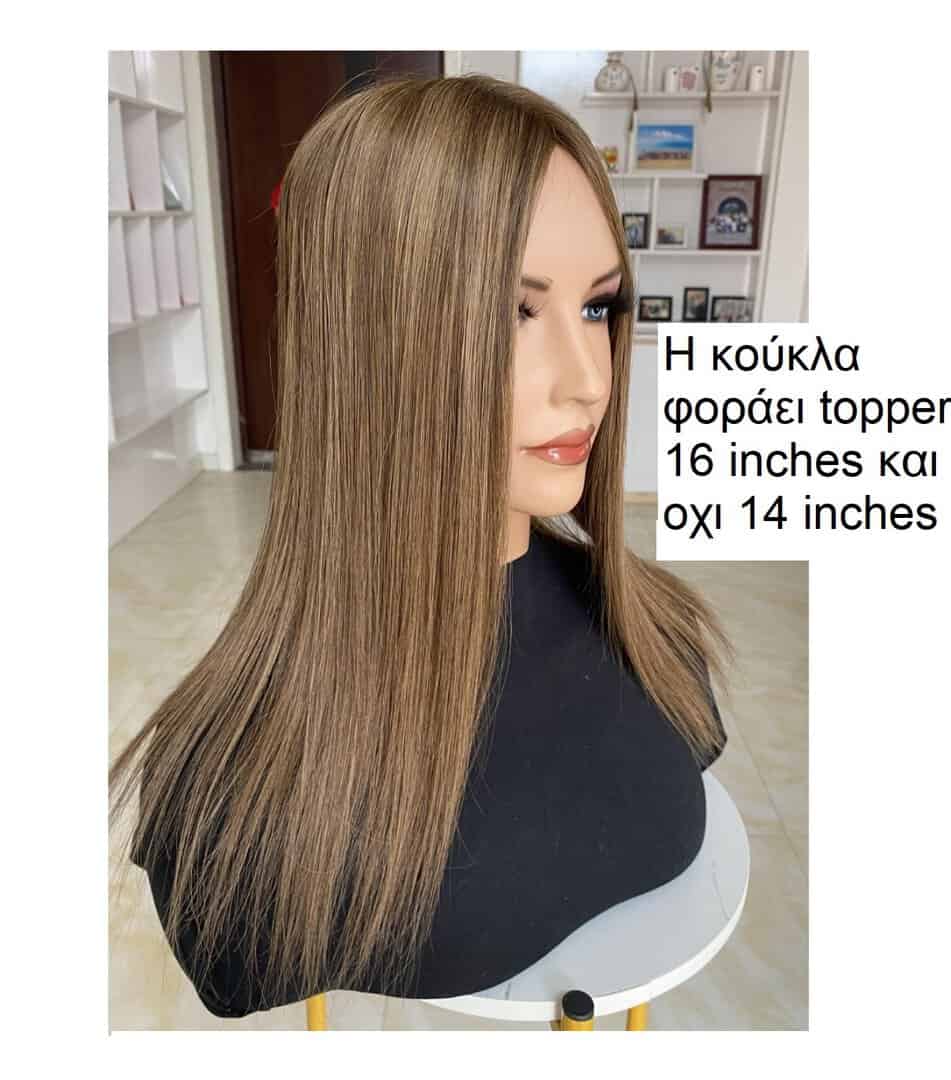 Γυναικείο Topper Τουπέ κορυφής μαλλιών από φυσική τρίχα με διάφανη βάση 13cm*15cm – Καστανό με μελί ανταύγειες SBB 14 inches