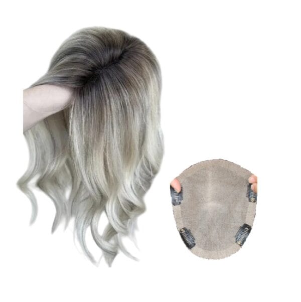 Γυναικείο Topper Τουπέ κορυφής μαλλιών από φυσική τρίχα με διάφανη βάση 15cm*18cm – Ξανθό ombre Balayage 16 inches