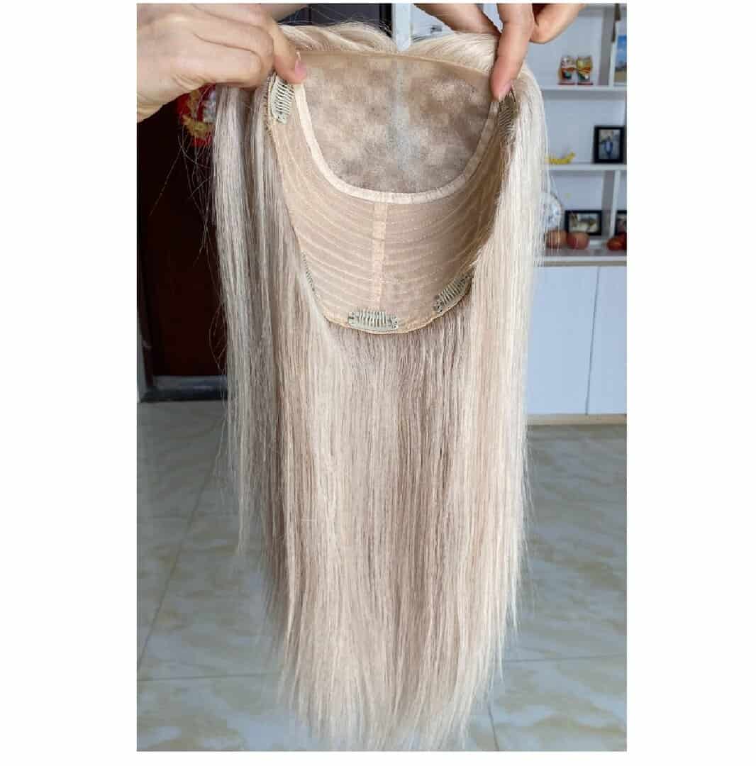 Γυναικείο Topper Τουπέ κορυφής μαλλιών από φυσική τρίχα με διάφανη βάση 22cm*22cm – Ξανθό 18Α/60 16 inches