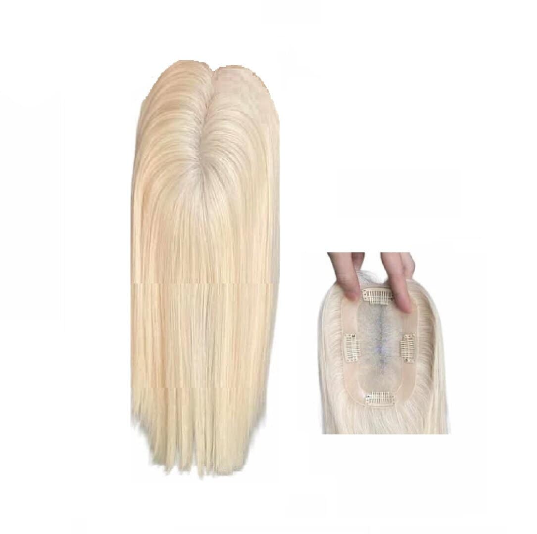 Γυναικείο Topper Τουπέ κορυφής μαλλιών από φυσική τρίχα με διάφανη βάση 8cm*14cm – Ξανθό #60 14 inches
