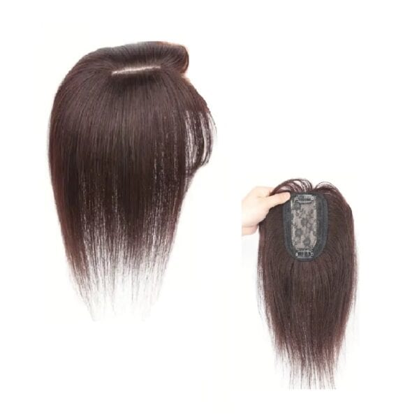 Γυναικείο Topper Τουπέ κορυφής μαλλιών από φυσική τρίχα με κλιπ 8×12 – Καστανό σκούρο Brown 14 inches