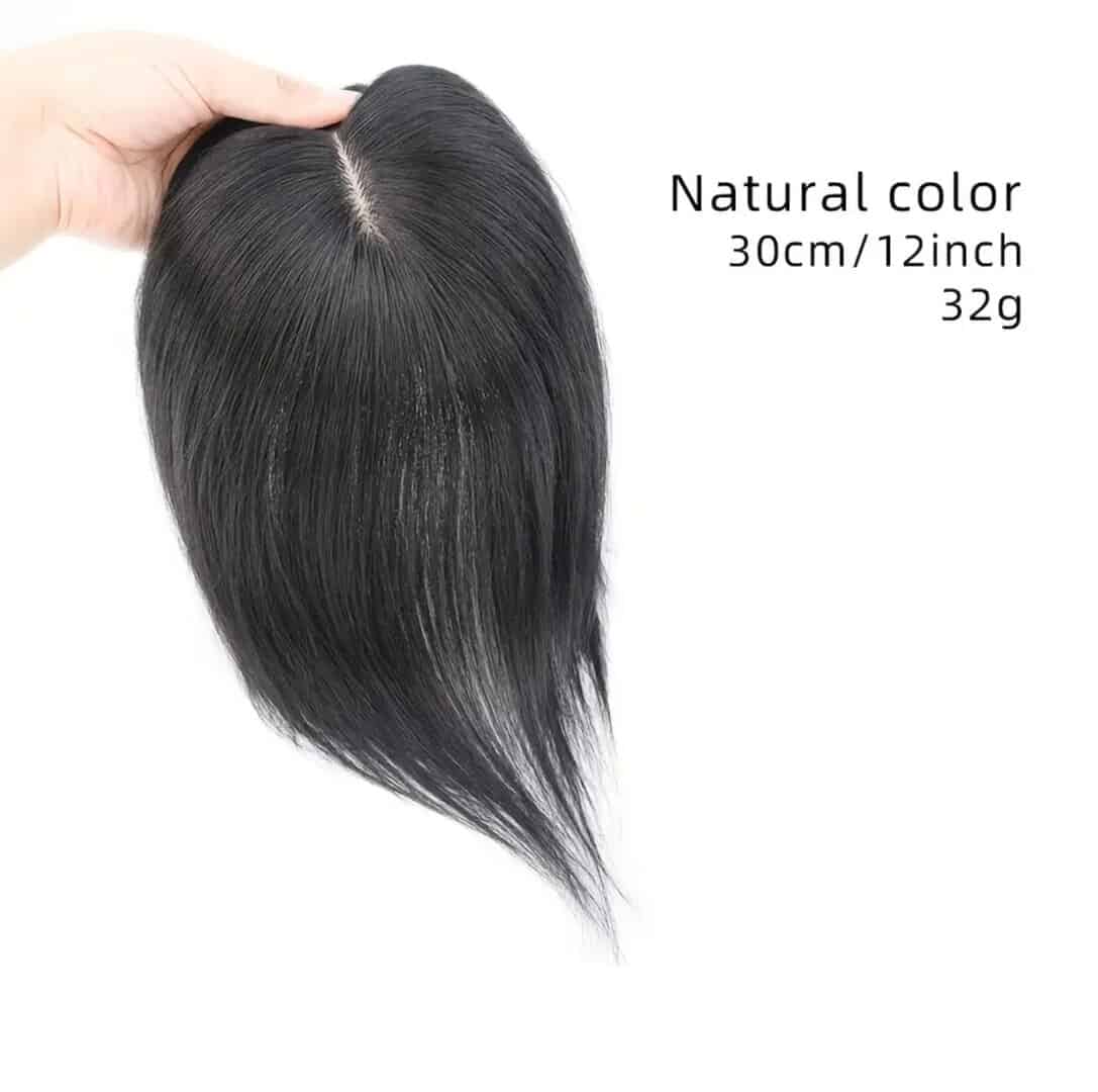 Topper- Τουπέ κορυφής με κλιπ μεγάλης επιφάνειας με φυσική τρίχα – Μαύρο χρώμα 12 inches
