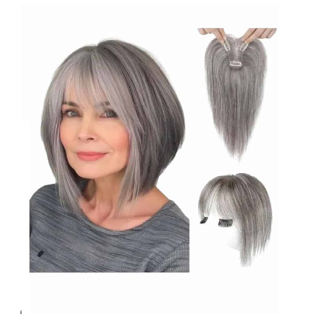 Γυναικείο Topper Τουπέ κορυφής μαλλιών με κλιπ μεγάλης επιφάνειας 10 inches – Grey