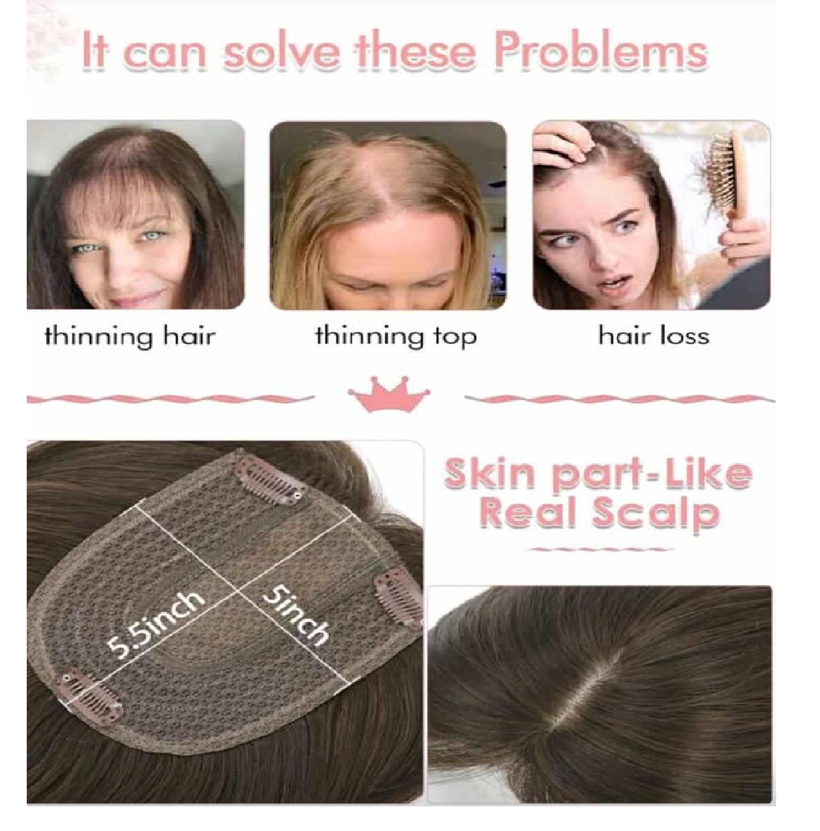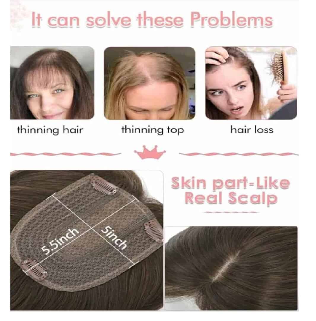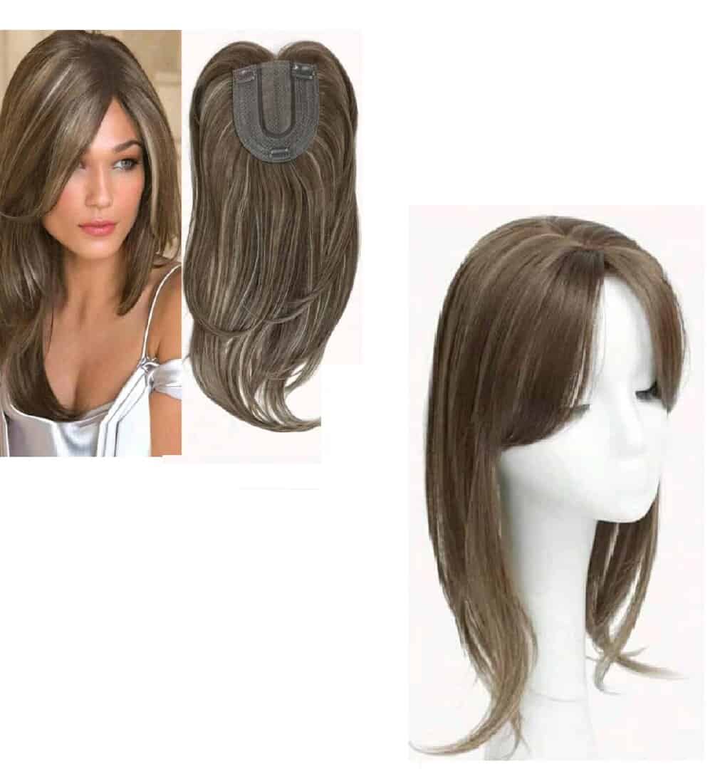 Γυναικείο Topper Τουπέ κορυφής μαλλιών με κλιπ μεγάλης επιφάνειας 14 inches – Καστανό με ανταύγειες