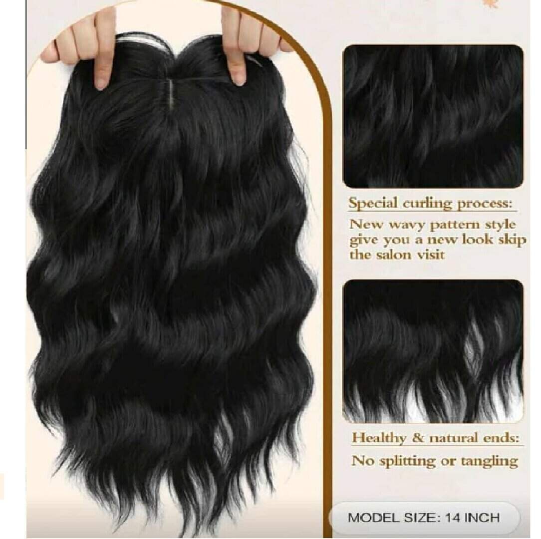 Topper- Τουπέ κορυφής με κλιπ μεγάλης επιφάνειας – Μαύρο χρώμα 14 inches
