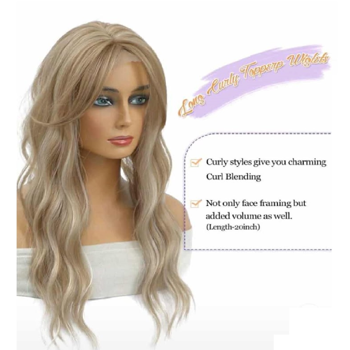 Γυναικείο Topper Τουπέ κορυφής μαλλιών με κλιπ μεγάλης επιφάνειας 20 inches – Blonde Ξανθό χρώμα
